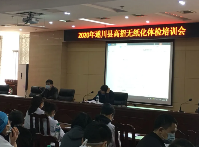 为包管吉安市无纸化体检试点事情顺遂开展,,,,,,尊龙抖圈官网教育指派专业运维团队深入各区(市)县,,,,,,对体检信息化终端装备操作使用、信息化体检治理平台使用、体检操作流程等举行了培训和现场演示。。。。。